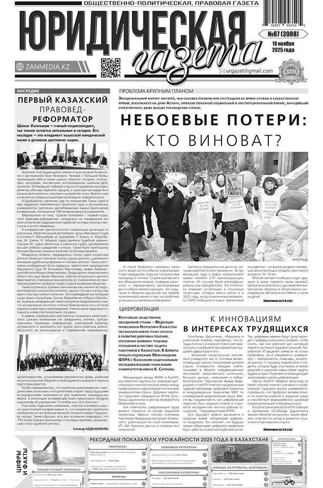 - Открылось наследство после смерти ЖУНУСБЕК ШЫНҒЫС ТАЛҒАТҰЛЫ, умершего 30 июля 2025 года. Наследникам обращаться к нотариусу Зілғара Г.Қ. по адресу: г. Астана, ул.Иманова,19. Тел. 8 775 126 5304.