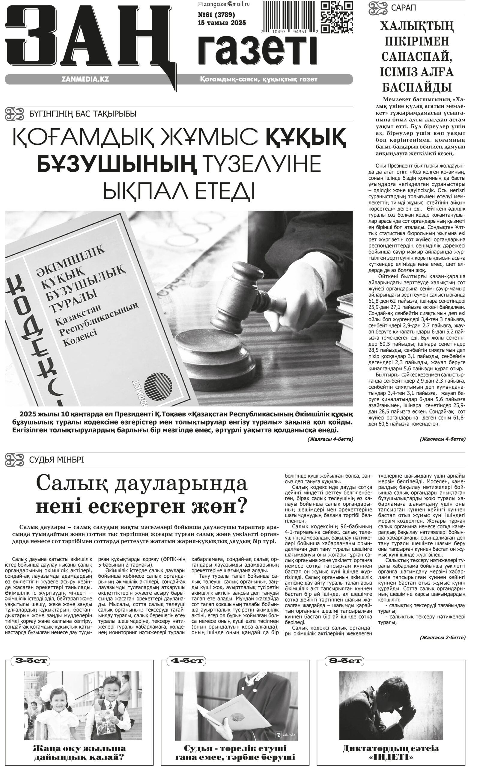 ЗАҢ газеті №61 (3789) 15 тамыз 2025
