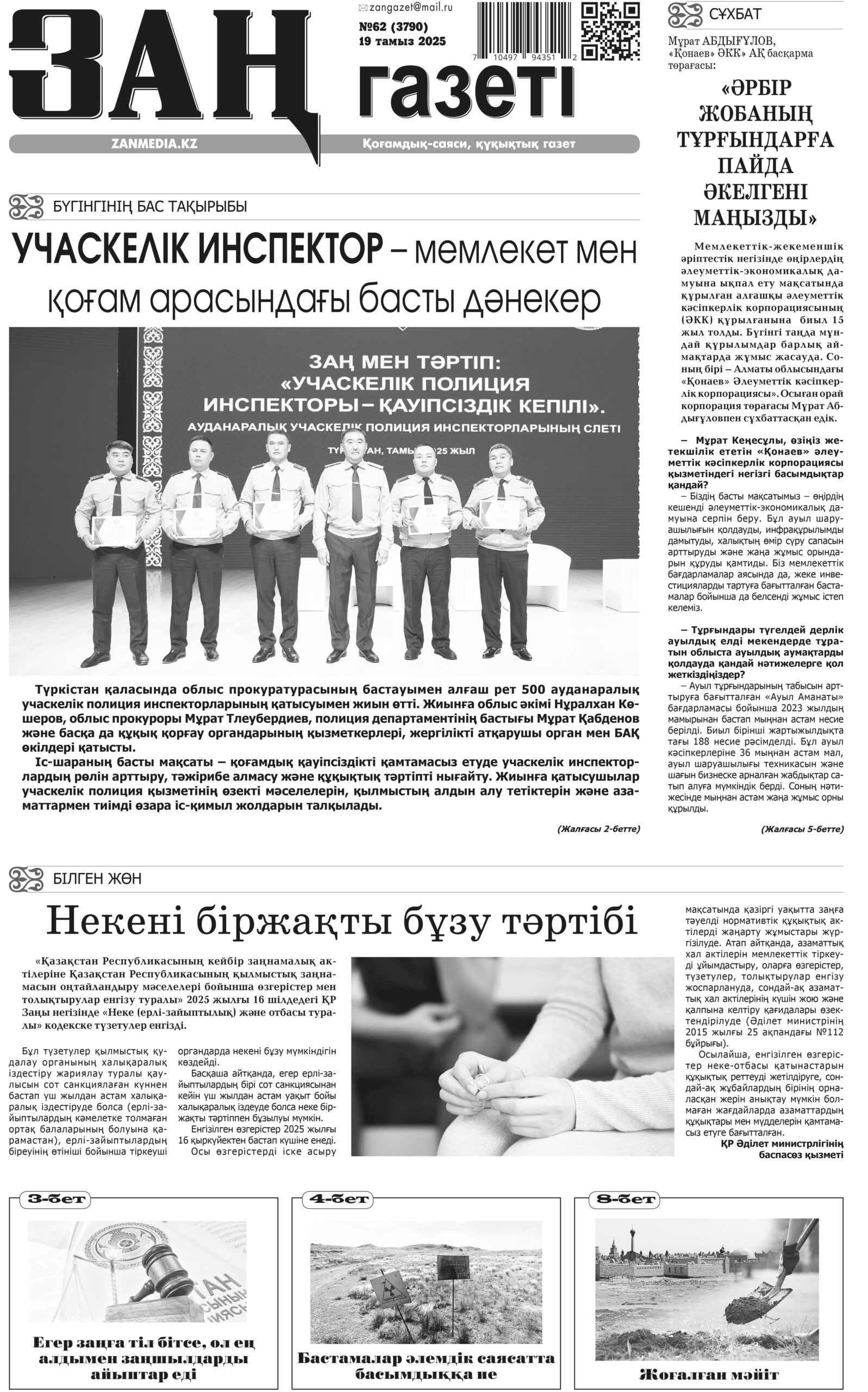 ЗАҢ газеті №62 (3790) 19 тамыз 2025