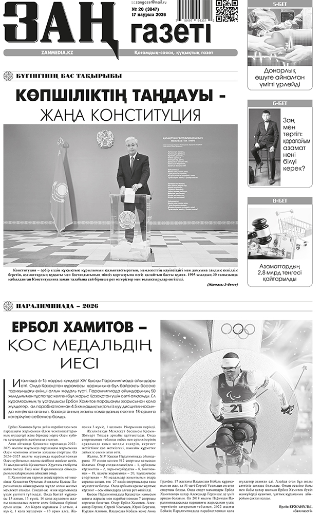 - «Зан жолы» ЖШС (БСН 030840000896) (Алматы қаласы, Медеу ауданы, Думан-2 шағынауданы, 57-үй, 73-пəтер) өзінің таратылатыны туралы хабарлайды. Талап-шағымдар осы хабарландыру жарияланған күннен бастап екі ай ішінде мына мекенжай бойынша қабылданады: Алматы қаласы, Халиуллин көшесі, 104/3 үй, тел. +7 701 782 00 70.